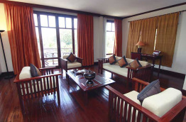 Les 3 Deluxe Suites ont une superficie de 80 m2 et offrent une vue sur le fameux Wat Ounalom. Chaleureusement décorées, toujours avec parquet et mobilier en bois de rose local.