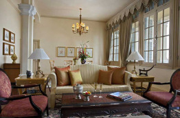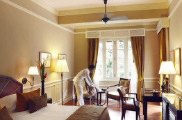 Un soin particulier a été apporté à la décoration des 170 chambres et suites de l'hôtel. Parquet au sol, tissus traditionnels, artisanat local et mobilier « art déco » offrent une atmosphère coloniale à l'ensemble. Toutes les chambres présentent une salle de bains avec baignoire et douche séparées. La majorité d'entre elles possède un balcon privé avec vue sur la piscine ou le jardin. Elles sont équipées d'un téléviseur, d'un minibar, de thé et café à disposition, d'un coffret fort, d'un accès internet en Wi-Fi et de l'air conditionné. Un service de chambre est disponible 24h/24 avec majordome personnel (à l’exception des State Rooms et Balcony Suites).