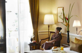 La Royal Suite mesure 228 m2. Elle est composée de 2 chambres, l'une avec lit à baldaquin et l'autre avec lits jumeaux, d'un salon spacieux, d'une salle à manger et de 3 salles de bains. Elle possède un balcon privé offrant une vue sur les jardins de l’hôtel.