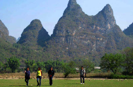 Départ en matinée pour rejoindre les environs du village de Yuangdi, situé à une cinquantaine de kilomètres de Guilin. Au cœur des paysages karstiques si célèbres de la province du Guangxi, vous prenez part à une randonnée de 3 heures le long de la rivière Li. Loin de l'animation des villes, vous rejoignez différentes localités uniquement accessibles à pied. Partez à la rencontre des habitants et contemplez l'animation traditionnelle qui règne dans les environs. Lors de votre marche, vous serez invités à déjeuner chez l'habitant. Dans l'après-midi, vous embarquez sur un radeau de bambous pour naviguer jusqu'au village de Xinping. Vous pouvez alors vous détendre et continuer de profiter du panorama offert sur les pitons rocheux. Contrairement à une croisière ordinaire sur la rivière Li, cette balade au fil de l'eau vous offre une intimité totale. Les environs de Guillin présentent une beauté naturelle exceptionnelle, c'est un décor qu'il est préférable de découvrir en toute tranquillité. Vous retrouvez votre véhicule à Xinping et reprenez votre route pour gagner la ville de Yuangshuo. Dîner libre et nuit à l'hôtel.