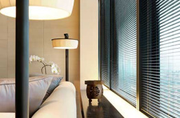 Les 90 Deluxe Rooms mesurent 45 m2 et ont vue sur la ville. Leurs pièces de vie ont l'avantage de pouvoir être séparées de l'espace de couchage, par un système de panneau en soie coulissant.