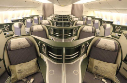 Sur la liaison Paris - Taipei (en Boeing A777-300), la classe Affaires est baptisée Classe Royal Laurel. Les sièges placés en épis sont inclinables à 180°, d’une largeur de 66 cm ils sont espacés de 2 mètres les uns des autres. Le système de divertissement est présenté sur écran individuel tactile de 15,4 pouces. Un port USB/lecteur mp3 est attribué à chaque siège. Les repas sont servis à la carte, il est même possible de pré-réserver des plats régionaux non disponibles à la carte, sur internet de 21 jours à 24 heures du départ.