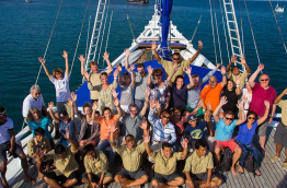 | Armement bateau | Voilier de type ketch possédant 600 m2 de voilure, 2 grands voiles à corne, 2 voiles de flèche, 1 trinquette et 2 focs - 1 Moteur Mitsubishi s6B de 280 ch - Vitesse de croisière 7 à 9 nœuds, vitesse maximum 10 à 12 nœuds 2 générateurs électriques. Système de navigation Max Sea, VHS, Furuno GPS, radar et échosondeur. Téléphone satellite. 2 annexes, capacité totale de 25 personnes, équipées chacune d’un moteur Yamaha de 40 ch. Autres équipements de sécurité : 40 gilets de sauvetage, extincteurs, pompe à incendie, kit de premiers soins, défibrillateur, centrale d’alimentation en oxygène médical. |