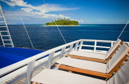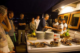 | Aménagements bateau | 3 ponts dont le « Cabin Deck », le « Main Deck » et le « Top Deck ». Le « Cabin Deck » abrite 12 cabines et les espaces techniques. Le « Main Deck » possède un espace extérieur où les repas sont servis sur une grande table, un salon climatisé et un espace équipé de bains de soleil. Le « Top Deck » présente des bains de soleil. |