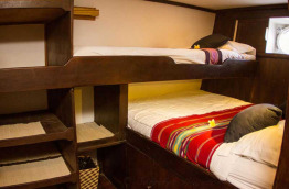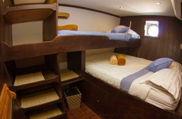 | Aménagements cabines | 2 cabines équipées d’un lit double, 2 cabines équipées de lits jumeaux superposés et 2 cabines équipées d’un lit double et d’un lit simple superposé. Toutes les cabines disposent de l’air conditionné, d’une salle de bains privée avec toilettes et douche, d’un coffre-fort et d’un espace de rangement. |