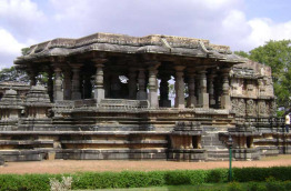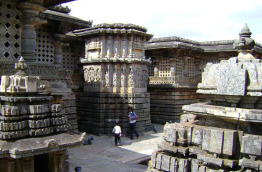 Dans la nuit, le Golden Chariot reprend sa route et se dirige vers Hassan. Vous prenez votre petit-déjeuner à bord, puis rapidement votre train accède à la ville de Sravanabelagola. L'occasion vous est alors offerte de découvrir le centre religieux du jaïnisme en Inde. Le train s'arrête pour la matinée et vous êtes accompagnés au pied de la colline sacrée, appelée Vindhyagiri Hill. Pour accéder au cœur du sanctuaire, vous devrez gravir près de 700 marches. Le site est dominé par une statue colossale représentant Gomateshvara, un dieu jaïna, en train de méditer. Ce monolithe mesure 17 m de hauteur, sa conception révèle une simplicité et une sobriété rare dans le Karnataka. De retour à bord de votre train, vous profitez d'un moment de repos pour votre déjeuner, pendant que le Golden Chariot rejoint Hassan. À votre arrivée, un véhicule vous attend pour vous mener vers les sites de Belur et de Halebidu. Ce complexe de temples est considéré comme l'héritage de l'une des plus riches périodes artistiques de la culture hindoue. Il est l'œuvre de la dynastie Hoysala, qui régna sur le Karnataka du XIe au XIVe siècle. À Belur, le temple Channekeshava nécessita un siècle de travaux. Il regorge de sculptures d'exception. À Halebidu, le temple Hoysaleswara est couvert de bas-reliefs d'une valeur tout aussi inestimable. Après la visite de ces deux chefs-d’œuvre de l'art hindou, vous reprenez votre véhicule pour rejoindre votre train. Dîner et nuit à bord, tandis que le Golden Chariot quitte Hassan pour Hospet.