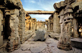 Le train arrive en gare d'Hospet tôt le matin. Après votre petit-déjeuner, vous êtes accompagnés à Hampi, une ville nichée dans un paysage de collines rocailleuses, située à une quinzaine de kilomètres au Nord d'Hospet. Vous partez alors à la découverte des ruines de Vijayanagar. Cette ancienne cité était la capitale d'un empire hindou, qui étendit son influence du XIVe au XVIe siècles. Le monument le plus ancien de ce site exceptionnel est le temple Virupaksha. Il est annoncé par un gopuram de près de 50 m de hauteur. Il est situé dans l'enceinte de la Ville royale de Hampi. À proximité, vous pourrez également contempler le temple Achyutaraya, les Étables des éléphants, ou encore le Bain de la reine. Vous rejoignez votre train à Hospet pour le déjeuner. Dans l'après-midi, vous êtes de retour à Hampi pour achever votre découverte du site, et parcourir le plus célèbre des temples de la cité, le Vijaya Vittala. Construit au XVIe siècle, il est inscrit au Patrimoine mondial de l'UNESCO, et présente de superbes sculptures. Elles sont considérées comme les plus belles réalisations des artistes du royaume de Vijayanagar. Dans l'enceinte du temple, vous pourrez également contempler un chariot de pierre finement sculpté. Après votre visite du Vijaya Vittala, vous accédez aux abords de la rivière Tungabgadra pour admirer le coucher de soleil. Vous regagnez enfin le Golden Chariot. Dîner et nuit à bord. Dans la nuit, votre train quitte Hospet et roule en direction de Badami.