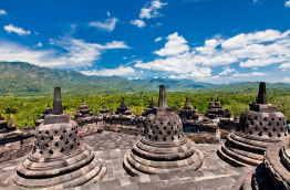 Départ de votre hôtel pour la découverte du plus grand stûpa bouddhique au monde. Construit au VIIIe siècle, Borobudur est situé dans la haute plaine de Kedu, un lieu sacré javanais aussi surnommé « le jardin de Java ». Le temple, ses stûpas ainsi que ses 500 représentations de bouddha, constituent en réalité un unique stûpa de base carré qui s'élève à 35 m de hauteur. Lieu de pèlerinage annuel durant la pleine lune de mai ou juin, Borobudur a été sauvé des ruines par les efforts conjoints de l'UNESCO et du gouvernement local. Il est aujourd'hui classé au Patrimoine mondial de l'humanité. Continuation vers les temples de Pawon et Mendut, puis arrêt pour votre déjeuner libre dans un restaurant local. Continuation dans l'après-midi en direction du village de Candi Rejo. Promenade à vélo ou en calèche pour découvrir ce charmant village et ses environs. Au cœur de la vie locale, entre plantations et ateliers d'artisans, vous découvrirez toutes les spécialités de la région. Observez la préparation des soins à base d'herbes médicinales, contemplez les artistes pratiquer la sculpture, et si vous le souhaitez, initiez-vous à la pratique du gamelan. Pour conclure, un spectacle de danses traditionnelles vous sera proposé avant de poursuivre votre route vers Magelang. Arrivée en soirée, installation à l'hôtel, soirée libre et nuit à l'hôtel.