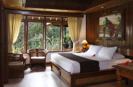 Les 67 chambres de l'hôtel sont construites à flanc de colline dans un superbe jardin tropical et offrent un bon niveau de confort. Elles sont réparties dans des bâtiments de petites tailles et construites en bois sur le modèle des habitations traditionnelles balinaises. Toutes les chambres présentent une salle de bains avec baignoire et une décoration intérieure inspirée du style locale. Les équipements dans les chambres sont limités, elles ne bénéficient pas de télévision.