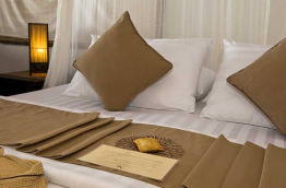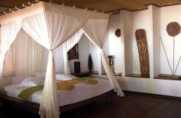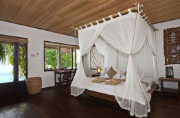 Ils sont tous très confortables, avec minibar, réfrigérateur, coffre-fort, télévision écran plat, Wi-Fi et air conditionné. Tous sont équipés de lits king-size avec une moustiquaire, et d’une grande terrasse privée. La décoration est très raffinée, tous les meubles et les intérieurs sont en bois, avec des voilages blancs ou bruns. Chaque bungalow possède un endroit spécifique pour entreposer le matériel de plongée. Ils sont disséminés dans le jardin tropical, et offrent une vue magnifique sur le lagon.