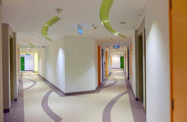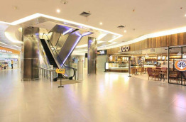 L'hôtel est situé dans les étages supérieurs d'un bâtiment abritant un grand centre commercial.