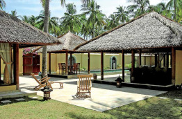 Les 18 Private Pool Villas sont disséminées dans la végétation de l'île. Chaque villa a été conçue pour offrir un espace privilégié et intime aux visiteurs. Leur surface s'étend sur 320 m2, et leur configuration reprend les codes d'architecture des maisons indonésiennes. Ainsi, plusieurs pavillons sont à votre disposition. Ils s'organisent autour d'une grande piscine privée de 4 m sur 8 m. Le plus vaste contient la chambre équipée d'un lit double ou de lits jumeaux, et d’une salle de bains avec douche. De part et d'autre de la piscine se trouvent deux espaces dont un « bale » pour vous reposer à l’ombre. L'autre contient deux bains de soleil pour ceux qui souhaitent prendre quelques couleurs. Un dernier pavillon accueille un vaste salon extérieur couvert.