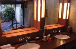 Ils se composent d'une spacieuse chambre comprenant un vaste coin salon, un coin bureau, et une salle de bains avec baignoire en marbre coulée dans le sol, et deux lavabos. Une douche extérieure est également à votre disposition dans votre jardinet privé, mais la baignoire intérieure est aussi équipée d'une douche pluie.