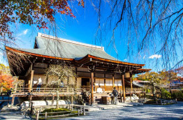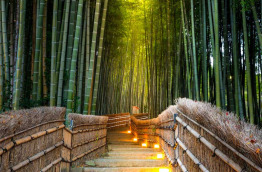Vous avez rendez-vous en début d'après midi à la gare de Kyoto pour partir à la découverte d'un lieu à la fois poétique et culturellement important. Au Nord-Ouest de la ville, au pied des montagnes Arashiyama, vous rejoignez la station du même nom et débutez votre promenade dans les proches environs. Les abords de la station ne présentent qu'un intérêt limité, mais c'est en gagnant les pentes verdoyantes des montagnes que vos découvertes commencent. Vous pénétrez tout d'abord dans le temple Tenryu-ji. L'édifice actuel, niché dans la forêt, date du début du XIXe siècle. L'attrait principal de Tenryu-Ji réside dans son jardin zen. Il fut aménagé au XIVe siècle, à la fondation du temple originel. Vous quittez Tenryu-ji par sa porte Nord et empruntez l'un des sentiers les plus surprenants de Kyoto. A cet endroit, une vaste bambouseraie recouvre les pentes de la montagne. Ce lieu permet de réaliser une belle promenade dans un paysage à la fois poétique et surréaliste. Vous arpentez ce chemin étonnant qui s'étend sur environ 500 mètres, et rejoignez ensuite le temple Jojakko-ji qui fut construit au XVIe siècle. Outre la jolie vue sur Kyoto qu'il offre, et l'élégance de l'un de ses pavillons appelé Tahoto, Jojakko-ji est surtout réputé pour ses érables. Ces arbres recouvrant la majorité du site présentent des nuances de couleurs magnifiques à l'approche de l'automne. Vous revenez enfin sur vos pas, en marchant vers le Sud, en direction de la rivière Katsura. Cette ultime promenade vous permettra de contempler le pont Togetsu. Cet édifice possède plus de 400 ans d'histoire. Les abords de la rivière offrent par ailleurs un superbe panorama sur la montagne Arashiyama. Selon les saisons, la végétation qui la recouvre se pare de teintes allant du vert intense au rouge vif. De retour dans le métro, vous rejoignez le centre-ville et la gare de Kyoto.