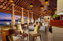 La Two Bedroom Suria Suite mesurent 188 mètres carrés, elle est construite sur 2 niveaux et compte 2 chambres avec salle de bains et dressing attenants situées à l'étage. En rez-de-jardin, la villa comprend un grand salon, une salle à manger, une salle de télévision et une vaste terrasse avec lits de repos.