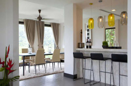 Chacune des 120 villas mesure 47 mètres carrés, elles sont adossées à la colline et orientées vers la mer ou vers la forêt. Elles possèdent toutes la même configuration et se composent d'une vaste chambre avec un balcon équipé de lits de repos, d'une grande salle de bains avec baignoire et douche séparées. La décoration intérieure est moderne et s'inspire du style malais. Pour votre confort, les villas sont équipées d'un téléviseur, de thé et café à disposition, d'un coffre-fort et de l'air conditionné.