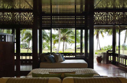 Les 10 Anjung Room sont plus spacieuses que les catégories inférieures, elles sont réunies par lot de deux dans des bâtiments de plain-pied. Elles présentent une surface de 88 mètres carrés. Elles sont plus luxueusement aménagées. La chambre présente un lit double et un lit de repos. La salle de bains comprend une partie intérieure avec une douche vous donnant accès à un espace extérieur privé dans lequel se trouve une élégante baignoire. Orientée vers la plage et offrant des vues partielles sur la mer, cette catégorie est certainement la plus adaptée pour un voyage de noces ou pour un séjour en toute intimité.