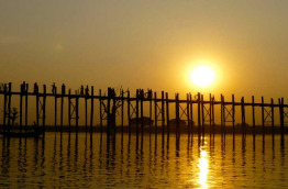 Départ le matin en direction des anciennes capitales de Amarapura, Ava et Sagaing. Amarapura est située à 11 kilomètres au sud de Mandalay, son nom signifie la « cité de l'immortalité ». Malgré son nom, peu de vestiges subsistent de l'ancien palais royal, pour autant, la ville accueille le célèbre monastère bouddhique de Mahagandayon. Il est l'un des plus grands centres d'enseignement monastique du pays où plus de mille moines vivent et étudient. Continuation en direction du pont d'U Bein, un superbe ouvrage en bois de teck qui franchit le lac de Taungthaman. D'une longueur de 1,2 kilomètre, il résiste à l'usage du temps depuis plus de deux siècles. Visite d'un atelier de tissage de la soie et du coton, un art qui a fait la réputation de la localité dans la région et qui est toujours considéré comme l'une des spécialités locales. Poursuite vers le Kyaung Bagaya, un monastère construit en bois, où fut notamment élevé le dernier roi d'Amarapura. Ce lieu est connu pour les centaines de statues de Bouddha que sa bibliothèque renferme. Certains étant considérés comme de véritables chefs-d’œuvre. Déjeuner libre dans un restaurant local. Dans l'après-midi, vous embarquez à bord d'une pirogue pour une rapide promenade au fil de l'eau afin de rejoindre Ava également appelée Inwa. Vous circulerez en calèche dans cette localité pour partir à la découverte de la tour de guet de Nanmyint, vestige de l'ancien palais royal, aussi appelée 'la tour penchée d'Ava'. Visite du Maha Aungmye Bonzan, un monastère bâti en briques et en stuc, puis route vers le monastère de Bargayar, célèbre pour ses sculptures en bois et ses 267 colonnes en teck. En fin de journée vous gagnez les collines de Sagaing, elles rassemblent de nombreux temples et pagodes datant d'époques différentes. Vous pourrez observer le coucher de soleil dans ce lieu unique avant de regagner Mandalay. Soirée et dîner libre. Nuit à l'hôtel.