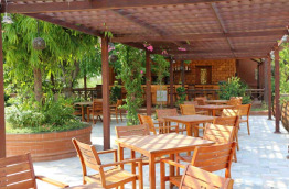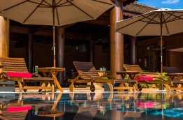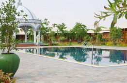 L'hôtel possède deux grandes piscines, et un grand jardin très bien entretenu. Sa réception, son restaurant et son Spa, sont installés sous de grands pavillons en bois et en brique, construits selon une architecture locale très soignée.