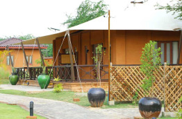 Le Bagan Lodge est un établissement spacieux composé uniquement de petits bungalows surmontés d'une toile de tente. Il a l'apparence d'un campement de luxe. Chaque bungalow abritent deux chambres, à l'exception des Suites qui sont des entités indépendantes.