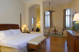 Les 32 chambres du The Strand Hotel proposent de grandes hauteurs sous plafond et de larges baies vitrées. Les sols sont recouverts de parquet en teck et les lits ont été sculptés à la main. Quant au mobilier, il évoque l'époque coloniale. La décoration est classique. Toutes les chambres sont dotées d'un coffre-fort, de l'air climatisé, d'un ventilateur de plafond et d'un téléviseur.