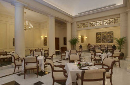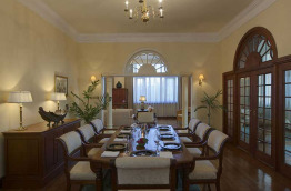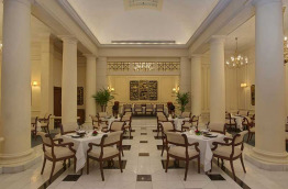 Le chef et la brigade du The Strand Grill préparent une cuisine du monde. La salle de réception est sophistiquée : le sol est en marbre et la décoration évoque le début des années 1900.