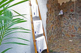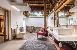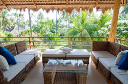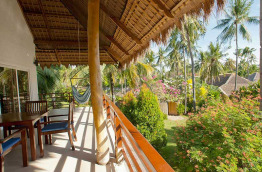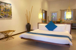 8 Deluxe Suites de 65 m2 sont disposées dans le jardin. Elles disposent d’une terrasse avec un coin repos et un hamac, d’une douche extérieure dans un petit jardin privatif, et d’un espace nuit avec lit king-size, bureau et rangements. Elles peuvent accueillir jusqu’à 3 personnes. Les Suites sont groupées par deux dans un bungalow indépendant.
