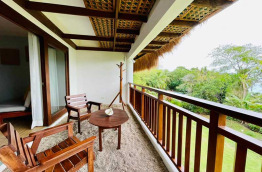 Amun Ini Beach Resort & Spa dispose de 16 Ocean View Deluxe Rooms, réparties dans deux grands cottages aux toits de palme. Les chambres mesurent entre 50 et 60 m2. Décorées avec élégance, elles sont équipées d’un lit king-size ou de deux lits simples, de l’air conditionné, d’une télévision écran plat, de l’accès internet Wi-Fi, d'un minibar, d’un coin salon avec canapé convertible pouvant accueillir une troisième personne, et d’un balcon ouvert sur la nature, face à la mer. La salle de bains, moderne, offre un petit coin de verdure autour de la douche.