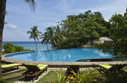 La belle piscine à débordement surplombe la plage, c’est le centre de l’hôtel, un lieu de détente où l’on aime admirer l’immensité de la mer, et profiter de la fraîcheur de la végétation environnante. Récemment, une terrasse de 500 m2 a été aménagée dans la continuité, avec des chaises longues, des tables et des parasols.