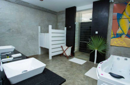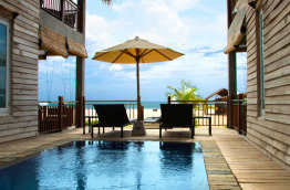 4 Ocean Suites de 48 m2, avec des sols en bois poli et des salles de bains équipées de bains à remous complémentaires. Ces suites possèdent chacune une terrasse et une piscine à partager avec la villa attenante. Orientées de face vers la baie, elles bénéficient certainement de la plus belle vue.