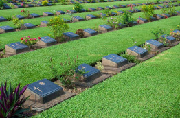 Continuation vers deux cimetières de guerre, dans lesquels reposent plus de 9 000 soldats Alliés, forcés à travailler sur ce projet macabre.