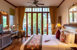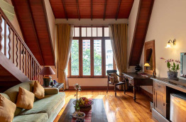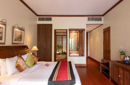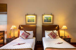 Les 24 chambres sont réparties dans des bâtiments de 4 étages, entourés d'une végétation luxuriante. Les salles de bains possèdent une baignoire et une douche séparée. Toutes les chambres sont différentes mais chacune est aménagée avec du mobilier traditionnel, acheté en Thaïlande et en Birmanie. Des objets d'art disséminés çà et là viennent apporter davantage de cachet à l'ensemble. En chambre, vous bénéficiez d’un petit réfrigérateur, d'un coffre-fort, d’une télévision, de peignoirs et chaussons, de l’accès internet Wi-Fi et de l'air conditionné.