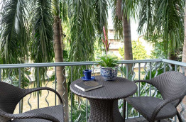 Les 3 Executive Deluxe Rooms présentent une surface d’environ 60 m2. L'une est située en rez-de-chaussée et possède une belle salle de bains avec un bain à jets ainsi qu'un balcon privé donnant sur le jardin. Les deux autres offrent un petit coin salon dans la chambre, une grande salle de bains et un balcon privé.